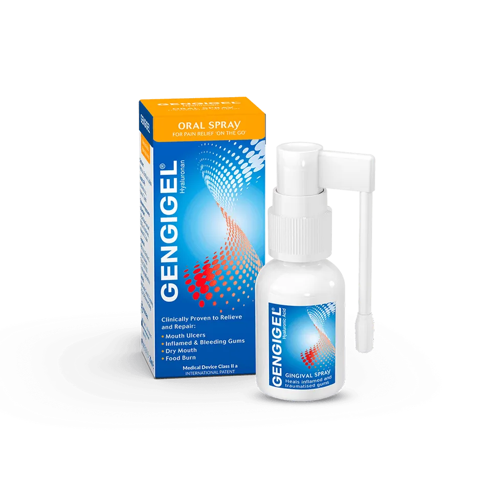 Gengigel® v obliki pršila je še posebej primeren za uporabo na težje dostopnih mestih ali bolečih predelih v ustni votlini. Priročno pakiranje za uporabo »na poti«.