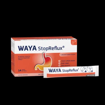 WAYA® StopReflux je medicinski pripomoček za lajšanje simptomov gastroezofagealnega refluksa, kot so: zgaga, zgaga med nosečnostjo, refluks želodčne kisline, vnetje požiralnika, težave pri požiranju in boleče požiranje.