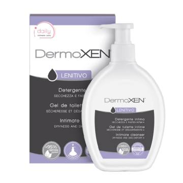 DERMOXEN LENITIVO, gel za intimno nego z dispenzerjem. Idealno za nego suhe nožnice in čas menopavze. Formulirano z nežnimi površinsko aktivnimi snovmi in obogateno s sokom aloe vere in vlažilnim kompleksom rastlinskega izvora. Deluje pomirjujoče, hkrati pa ščiti zunanji intimni predel pred draženjem in srbenjem.