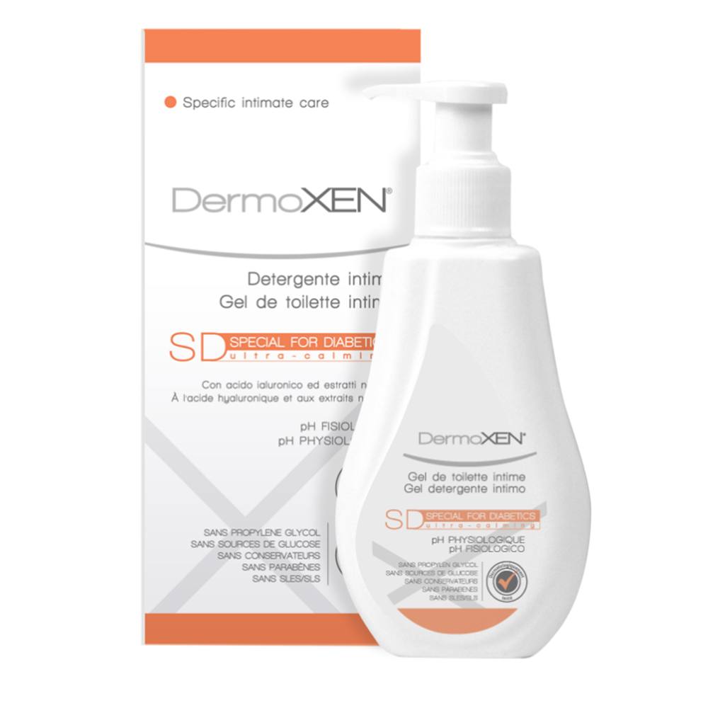 DERMOXEN ULTRACALMING DIABETIC, gel za intimno nego in umivanje intimnega predela z zaščitnim, vlažilnim in pomirjujočim delovanjem. Za razdraženo in občutljivo kožo. Idealno za dnevno uporabo. Testirano na ljudeh z diabetesom*, ki jih večinoma prizadene vulvovaginalna suhost. Testirano na in vitro rekonstruiranem epidermisu. Z naravnimi sestavinami. 0% SLES, SLS, konzervansov, alergenih dišav, vira glukoze, propilen glikola. Testirano na nikelj, krom, kobalt, živo srebro in paladij (vsebuje manj kot 0,00001%).