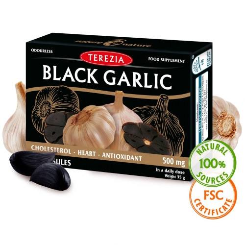 Črni česen je nekaj posebnega pri tradicionalnem zdravilstvu. Gre za kuhinjski česen (Allium sativum), ki se v postopku fermentacije v nekaj tednih v posebni posodi, pri natančno določeni temperaturi in vlagi, obarva črno. Kakšen je namen tega? Česen na naraven način olajša vzdrževanje normalne ravni holesterola in lipidov v krvi. Poleg tega podpira delovanje srčno-žilnega sistema in pomaga razbremeniti težke noge in stopala. Ima tudi antioksidativne lastnosti in krepi imunski sistem. Postopek fermentacije podvoji učinke česna in nevtralizira neprijeten vonj in oster okus. 7 kg svežega (belega) česna = 1. kg suhega fermentiranega (črnega) česna. Vsebina 1. kapsule = 1 strok svežega česna.