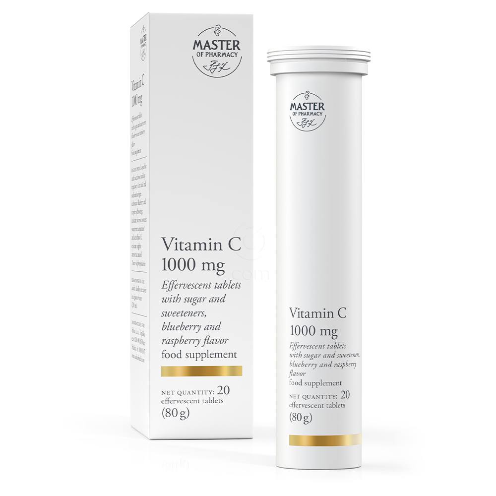 Master of Pharmacy Vitamin C 1000 mg šumeče tablete je prehransko dopolnilo z okusom borovnice in maline. S sladkorjem in sladilom.
