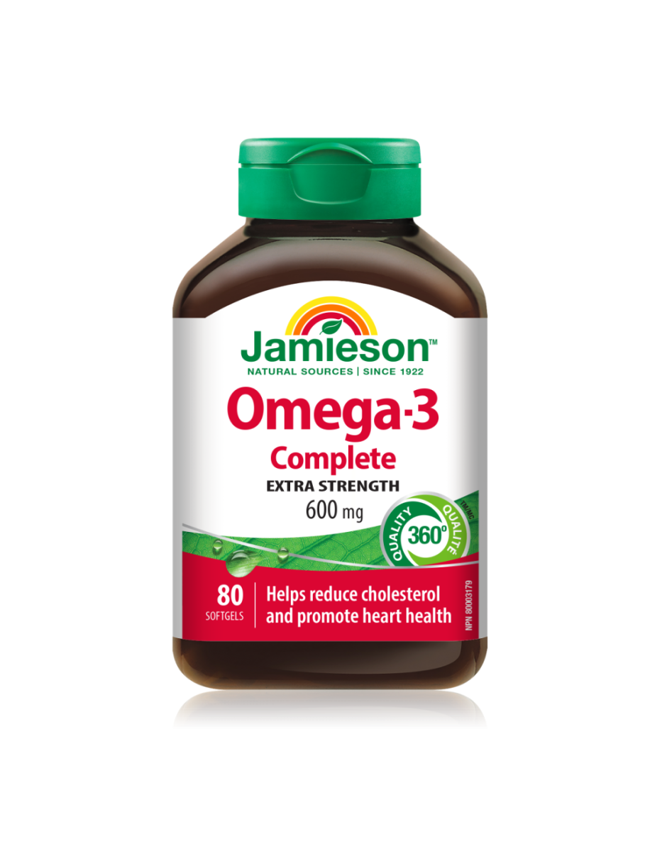 Jamieson Omega-3 Complete je prehransko dopolnilo, ki zagotavlja kar 600mg Omega-3 maščobnih kislin (400 mg EPK in 200 mg DHK) v vsaki kapsuli.
