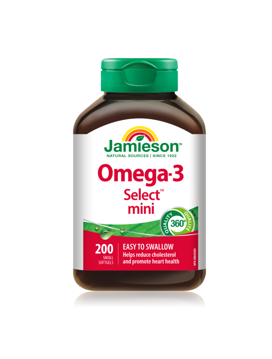 Jamieson Omega-3 Select Mini je prehransko dopolnilo, ki vsebuje kar 300 mg maščobnih kislin Omega-3 v priročni obliki mini kapsul, ki se zlahka pogoltnejo.