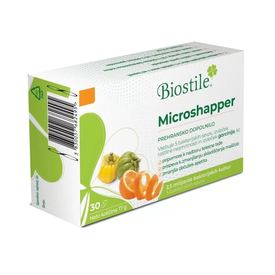 Prehransko dopolnilo Microshapper je izdelek z bakterijskimi kulturami, izvlečkom garcinije in izvlečkom rastline nesmrtnosti. Bogata sestava prehranskega dopolnila, ki s pomočjo naravnega izvlečka garcinije, pripomore k nadzoru telesne teže[2]. Odvečni kilogrami, maščobne obloge, predvsem okoli trebuha, se začnejo nalagati tudi zaradi starosti in spremembe v presnovi. Kapsule Microshapper vsebujejo izvleček garcinije, ki zmanjšuje željo po hrani[2]. Zadostuje 1 kapsula na dan, ki jo jemljemo zjutraj na tešče, s kozarcem vode. Ena kapsula vsebuje kar 5 bakterijskih sevov in kar 2,5 milijarde bakterijskih kultur.