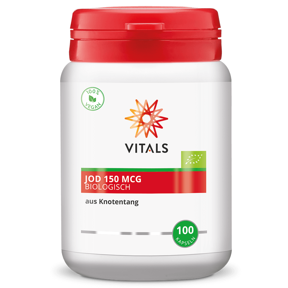 Jod se naravno pojavlja predvsem v oceanih, medtem ko je vsebnost joda v tleh na kopnem zelo neenakomerna. Zato je najboljši naravni vir joda morska hrana, kot so ribe, školjke in morske alge. Bio Jod 150 μg Vitals je pridobljen iz ekološke morske alge Ascophyllum nodosum, ki je naravnI bogat vir joda. Standard tega prehranskega dopolnila je 150 μg joda na kapsulo.