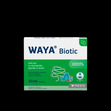 Prehransko dopolnilo v obliki kapljic WAYA® Biotic z dobrimi mlečnokislinskimi bakterijami poskrbi za udobje črevesja najmlajših.