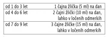 Navodila za uporabo: Priporočamo otrokom od 1. leta starosti dalje. Tudi za šolarje. Izdelek se lahko jemlje 3 mesece brez premora. Priporočamo jemanje pred zajtrkom ali večerjo, po žličkah, glede na starost otroka: