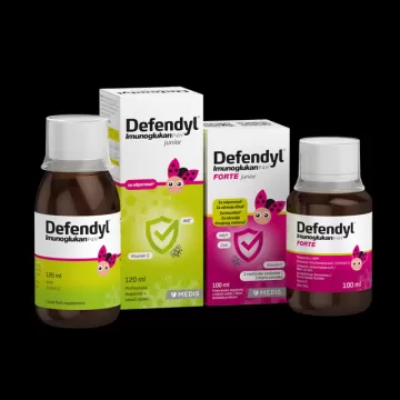 Za imunski sistem in kratkotrajno podporo ob povečanih potrebah organizma. Defendyl-Imunoglukan P4H® junior je prehransko dopolnilo, ki vsebuje naravni Imunoglukan® in vitamin C. Defendyl-Imunoglukan P4H® FORTE junior vsebuje 7 aktivnih učinkovin z dokazano pozitivnim vplivom na imunski sistem in dihala.